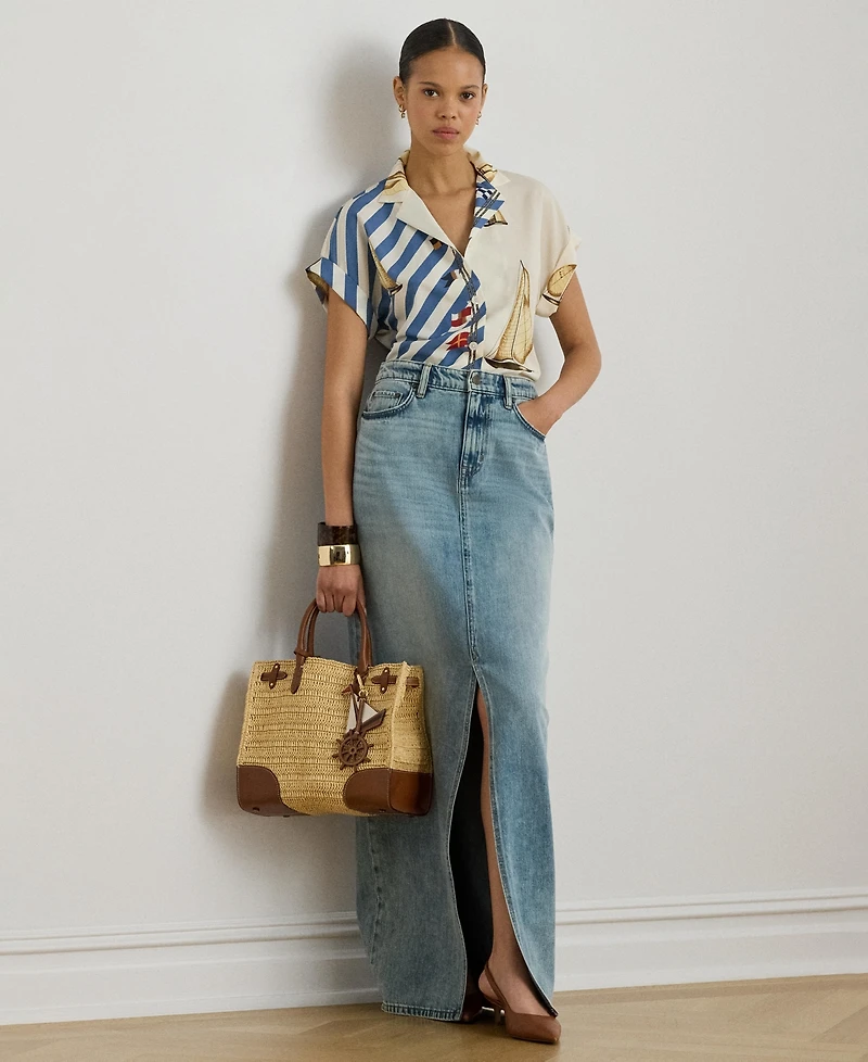 Lauren Ralph Women's Denim Pencil Maxi Skirt