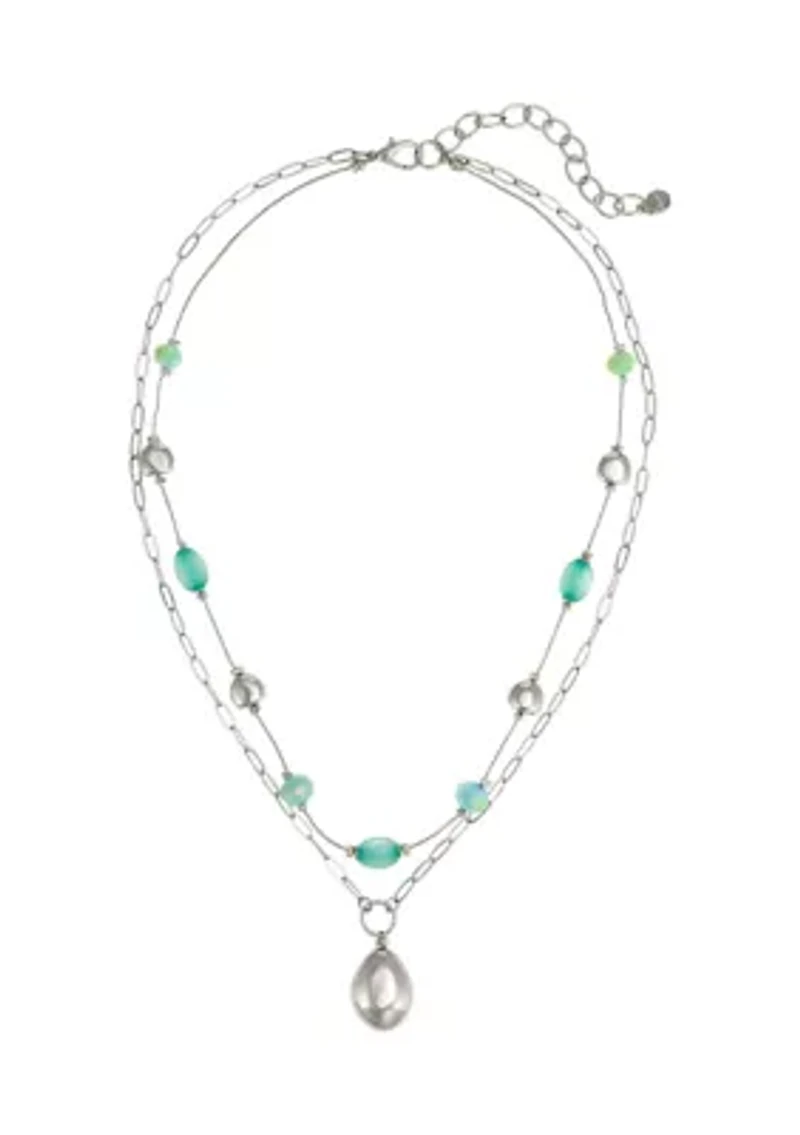 Layered Aqua Beaded Teardrop Pendant Necklace in Franklin, TN