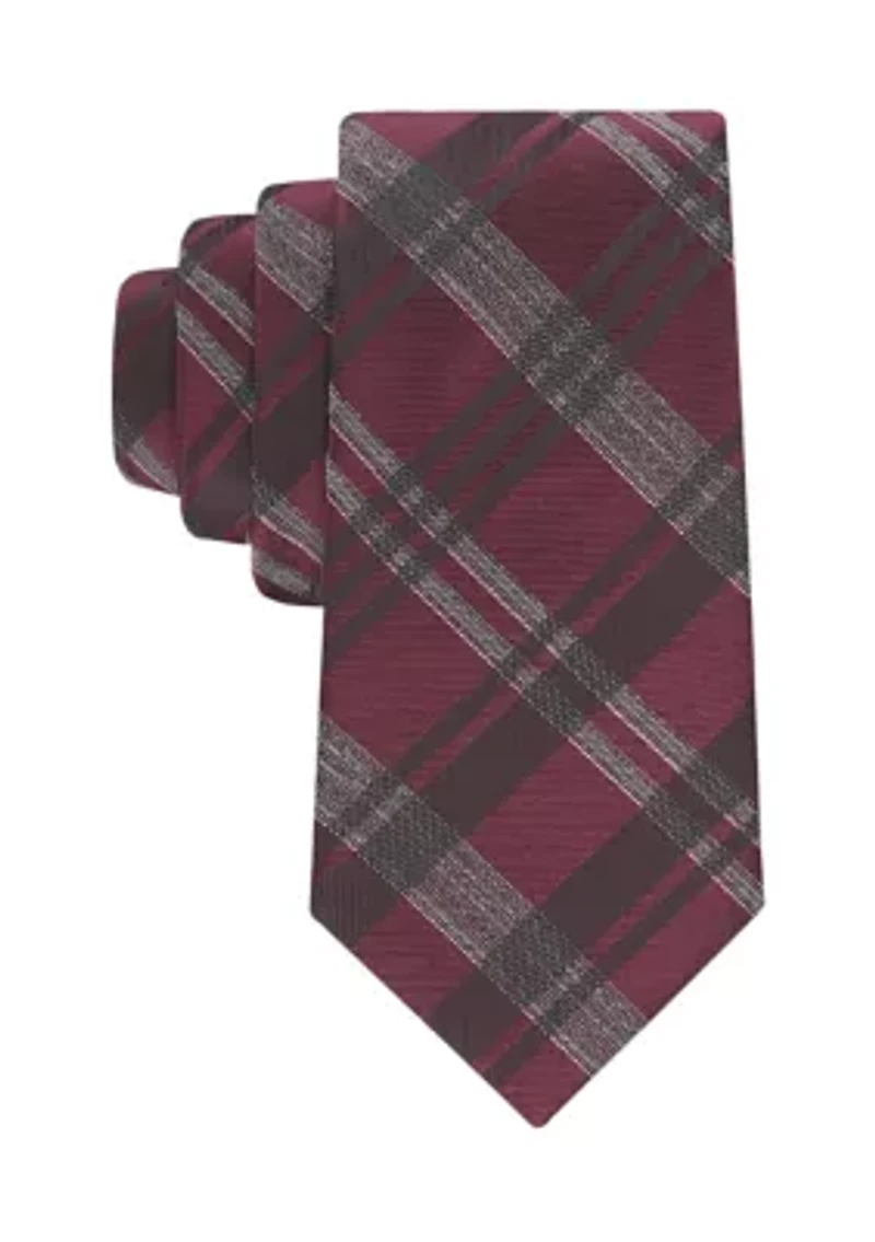 This Calvin Klein men's tie is designed with a plaid pattern to elevate any suit with minimal effort. Crafted in a standard 57-inch length with a 3-inch width, this fashion accessory delivers a tailored silhouette that complements any dress shirt. Plaid pattern Imported Product Specifications 57" L x 3" W Material & Care Polyester, Silk Dry clean only