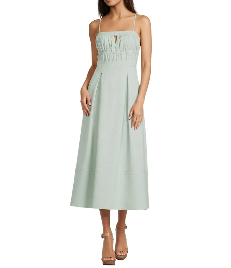 Le' AL.X Ruched Bodice Woven Spaghetti Strap Midi Dress
