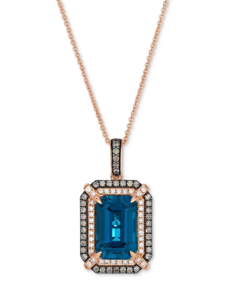 Le Vian Deep Sea Blue Topaz (3-9/10 ct. t.w.), Chocolate Diamond (1/4 t.w.) and Nude (1/5 Pendant Necklace 14k Strawberry Gol