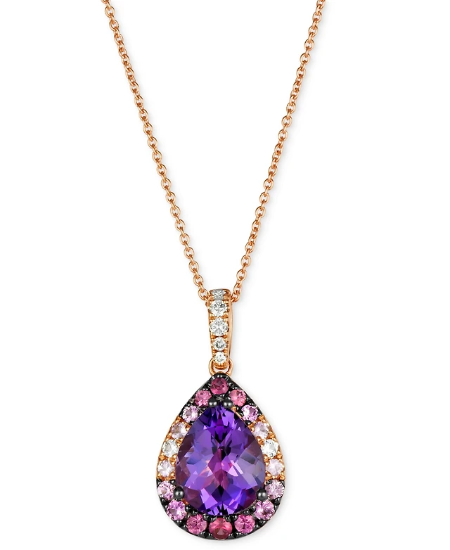 Le Vian Multi-Gemstone (2-1/5 ct. t.w.) & Nude Diamond (1/6 ct. t.w.) Pear Halo Adjustable 20" Pendant Necklace in 14k Rose Gold