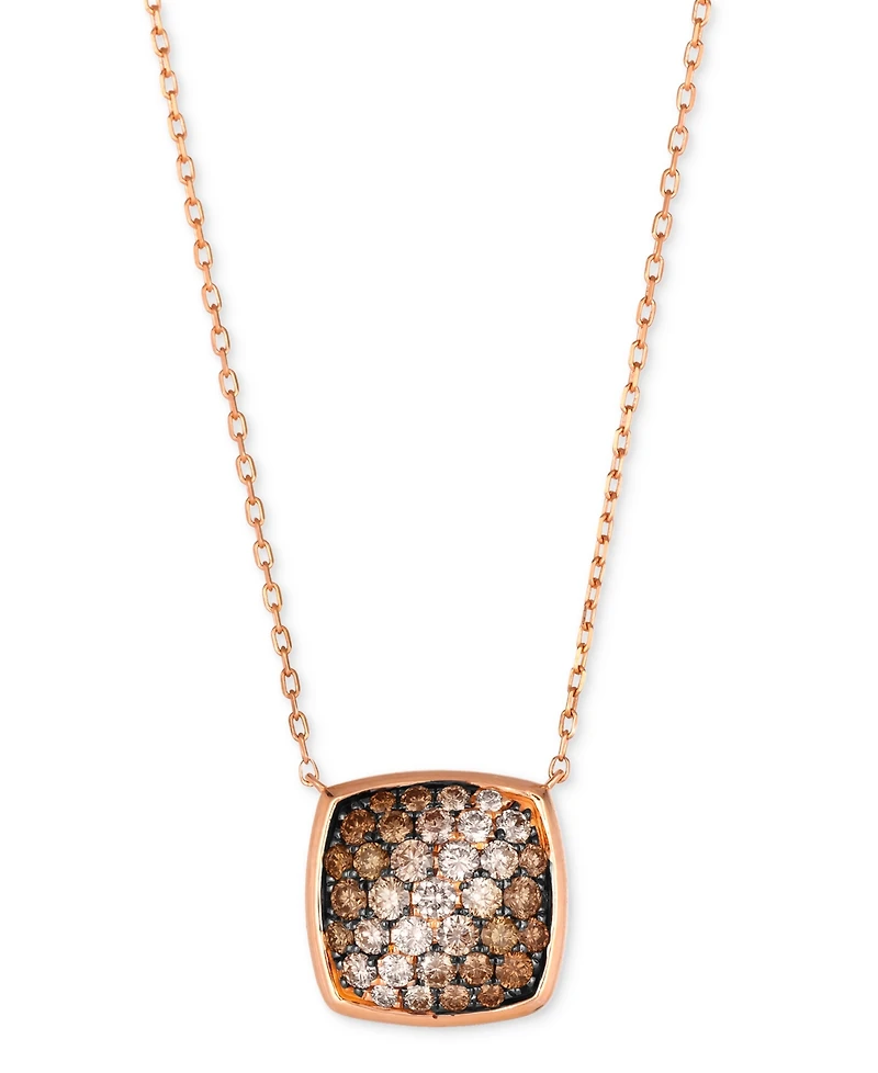 Le Vian Ombre Chocolate Ombre Diamond & Vanilla Diamond Cushion Cluster 18" Pendant Necklace (1-1/20 ct. t.w.) in 14k Rose GoldLe Vian Ombre Chocolate Ombre Diamond & Vanilla Diamond Cushion Cluster 18" Pendant Necklace (1-1/20 ct. t.w.) in 14k Rose Gold