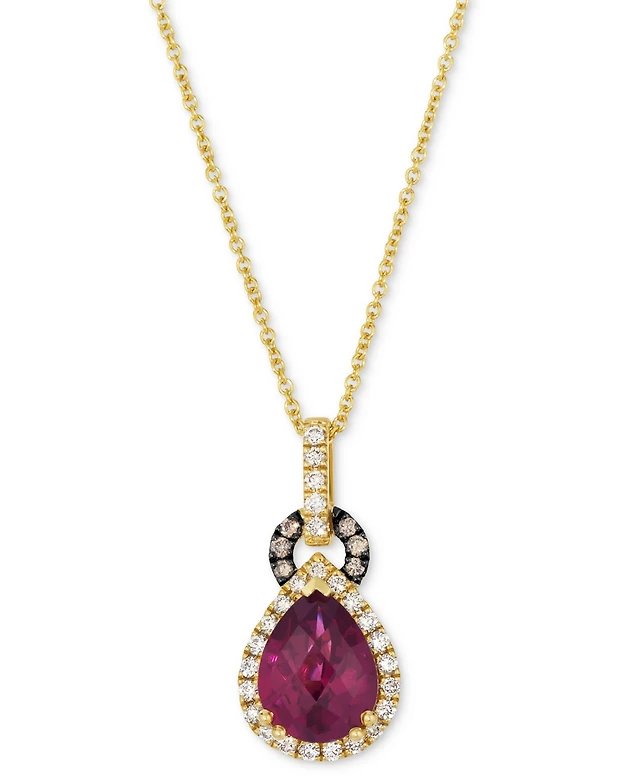 Le Vian Rhodolite (2-1/10 ct. t.w.) & Diamond (1/4 ct. t.w.) Pear-Shape Halo 20" Adjustable Pendant Necklace in 14k Yellow Gold