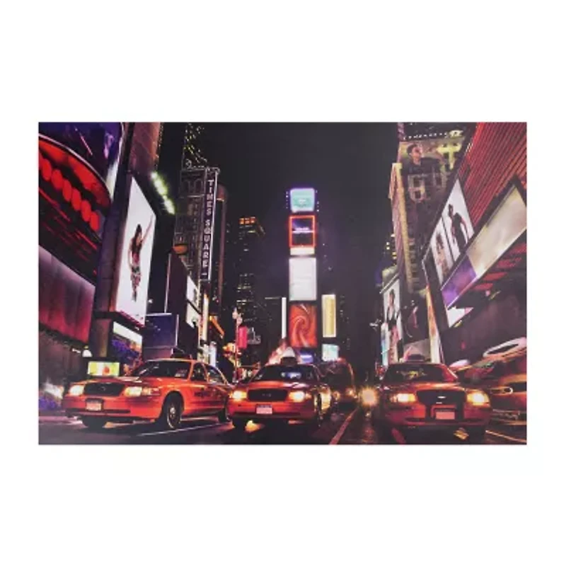 LED Lighted NYC Times Square Broadway Taxi Cabs Canvas Wall Art 15.75" x 23.5"