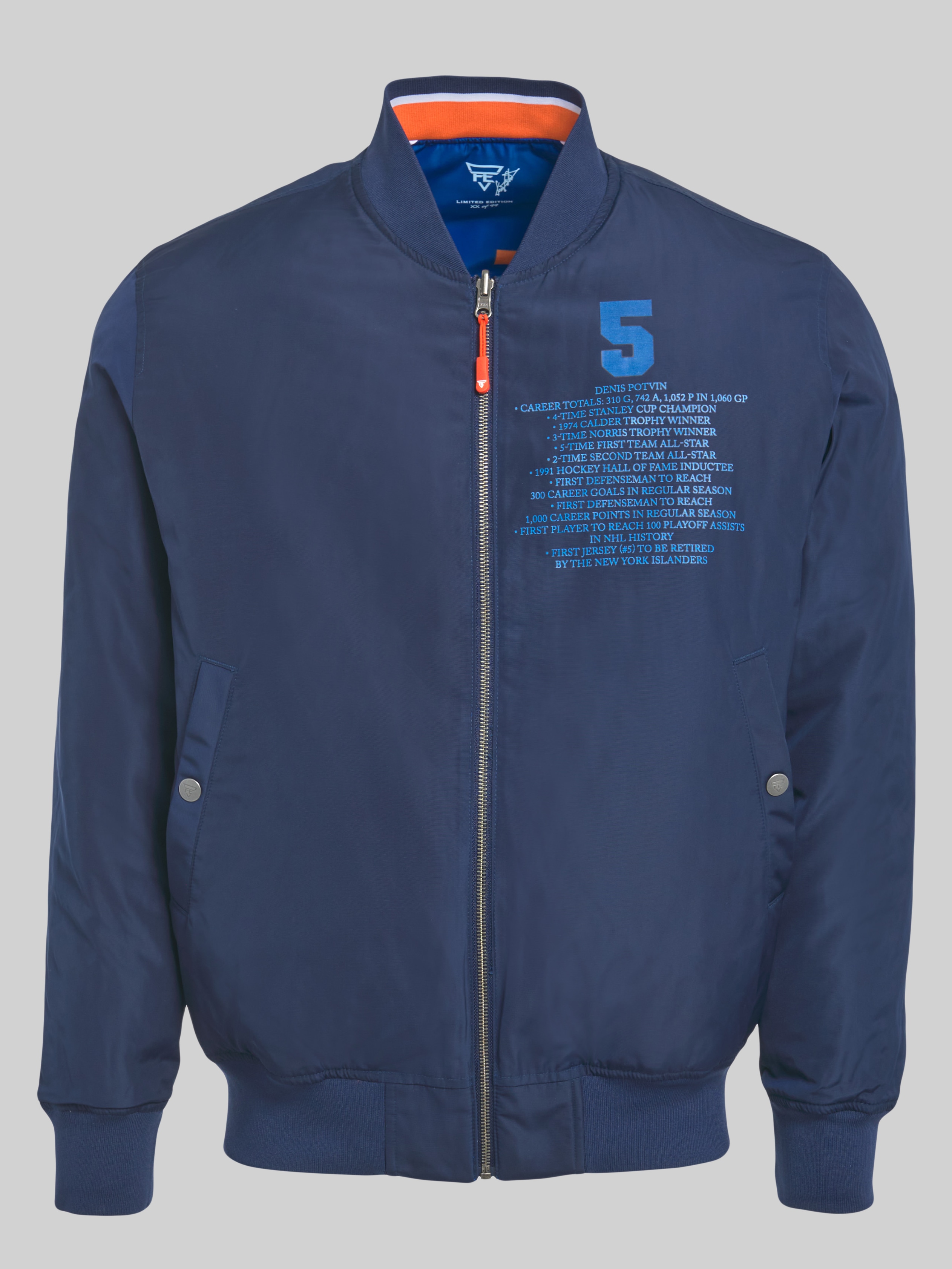 Celebrate hockey's greatest with this reversible padded bomber, a tribute to the icons who defined the sport. This limited-edition jacket honors NHL® legends with bold, collectible designs on one side and a minimalist look on the reverse. It's two styles in one, so you can switch from fan mode to streetwear cool in seconds. Crafted from durable water-repellent, antimicrobial fabric, each bomber is padded for warmth and comfort, making it perfect for chilly arenas or everyday wear. With only 99 pieces per legend, each jacket is individually numbered, turning your outerwear into a piece of hockey history. Whether you're shouting from the stands or strolling through the city, this bomber lets you rep your heroes with pride.