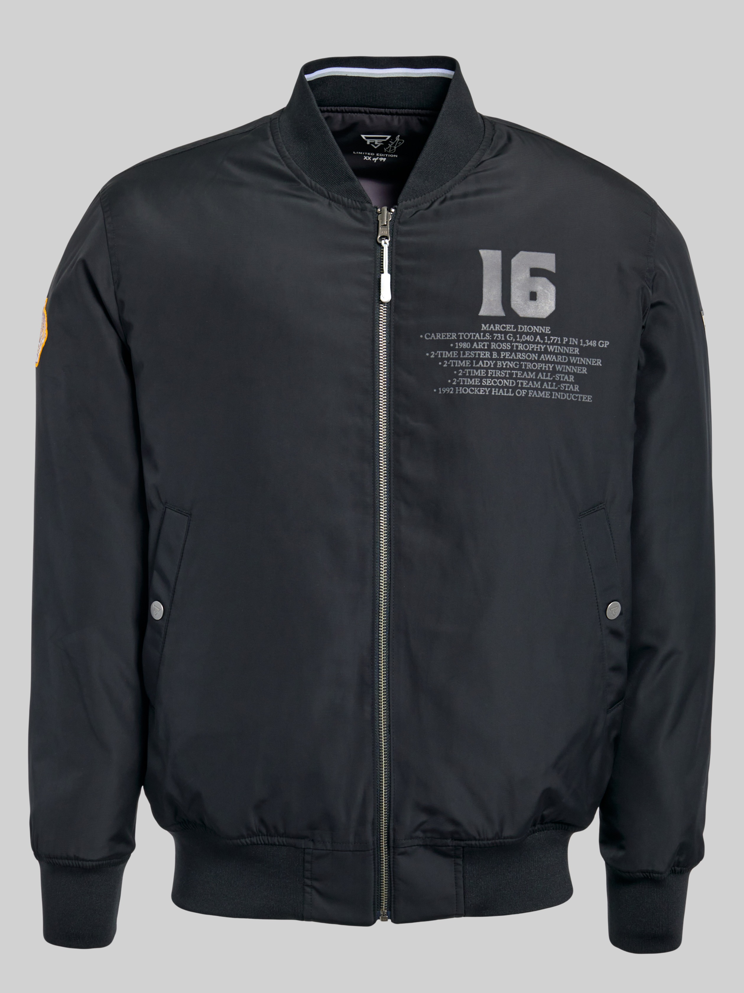 Celebrate hockey's greatest with this reversible padded bomber, a tribute to the icons who defined the sport. This limited-edition jacket honors NHL® legends with bold, collectible designs on one side and a minimalist look on the reverse. It's two styles in one, so you can switch from fan mode to streetwear cool in seconds. Crafted from durable water-repellent, antimicrobial fabric, each bomber is padded for warmth and comfort, making it perfect for chilly arenas or everyday wear. With only 99 pieces per legend, each jacket is individually numbered, turning your outerwear into a piece of hockey history. Whether you're shouting from the stands or strolling through the city, this bomber lets you rep your heroes with pride.