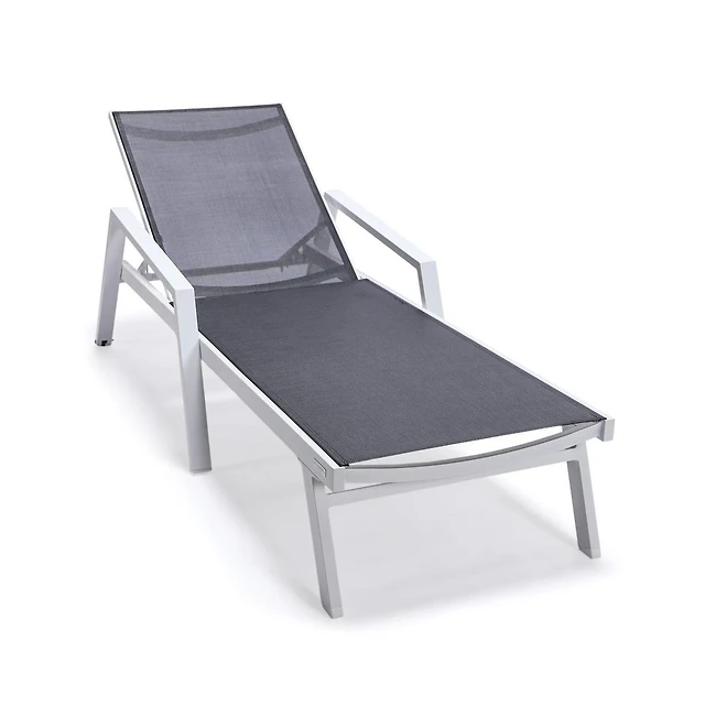 LeisureMod Marlin Patio Chaise Lounge Chair With Armrests in White Aluminum Frame