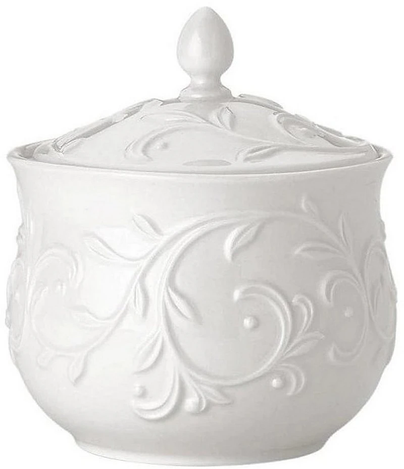 Lenox Opal Innocence Carved Scroll Porcelain Sugar Bowl with Lid