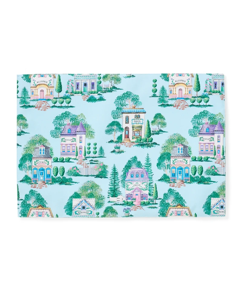 Infuse your table with storybook charm using this Lenox Spice Village placemat, where pastel cottages and blooming gardens unfold across a serene blue background, capturing the enchanting spirit of the beloved collection. Designed to coordinate with Lenox Spice Village jar sets, accent pieces, and coordinating linens, it brings a complete, cottage-inspired look.