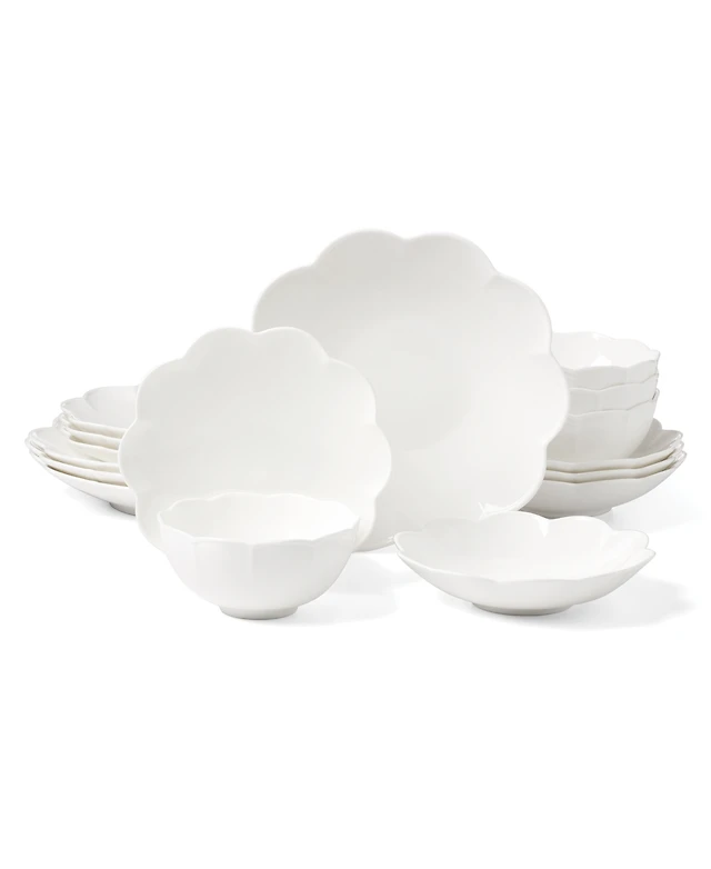 Elama Jane Round Scalloped 16-Pc. Dinnerware Set, Service For 4