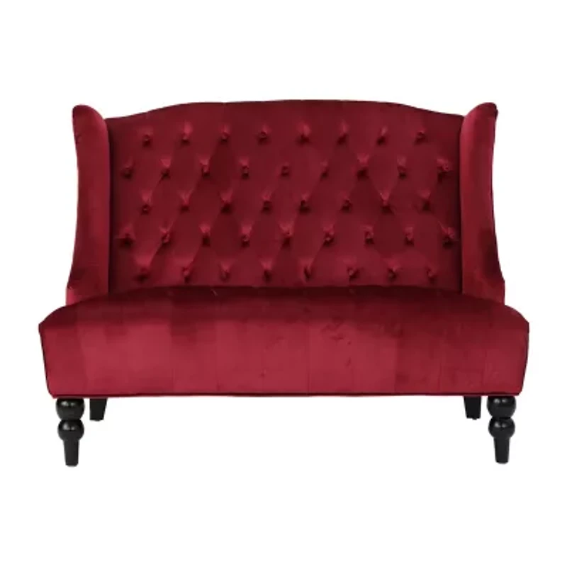 Our charming high back loveseat takes a traditional look and gives it a glamorous upgrade to create something fresh for your home. Featuring an exquisite wingback design and soft velvet upholstery, this stunning loveseat is the perfect addition for any living room, bedroom, or foyer. Using deep button-tufted diamond stitching, this classic style will easily anchor your decor in an atmosphere of elegance. This loveseat is finished with beautifully turned legs, bringing a striking modern look and outstanding durability to your home.