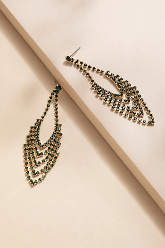 Gold Green Diamante Bow Cupchain Drop Earrings
