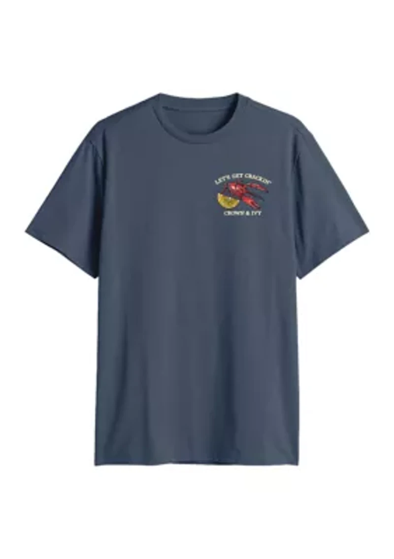 This comfortable tee from Crown & Ivy™ is perfect for everyday wear. It showcases a seafood-boil theme with a recognizable brand logo and is ideal for casual outings or lounging at home. Crew neck Short sleeves Imported Belk Exclusive Material & Care Cotton, poly blend Machine washable