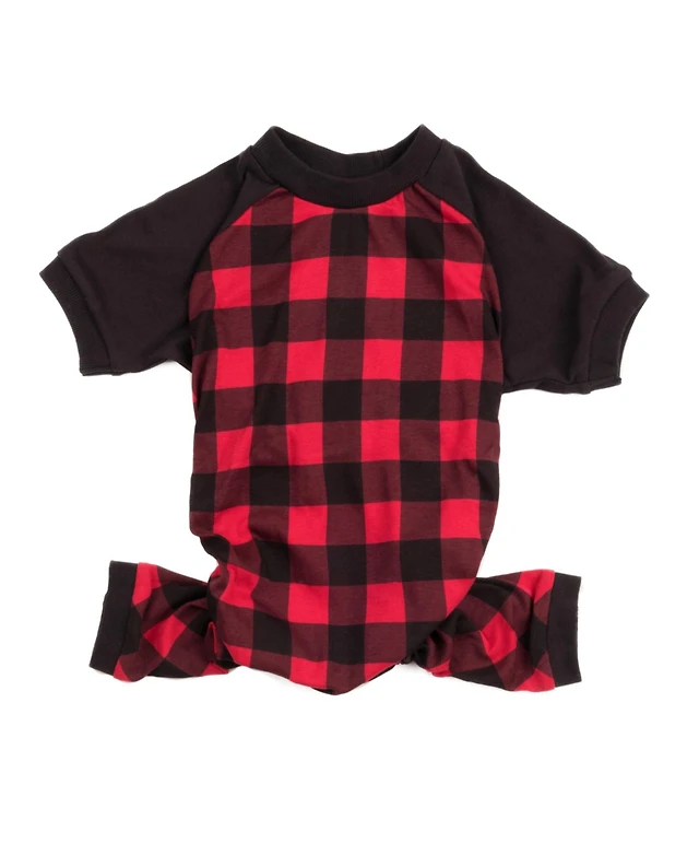 Leveret Dog Cotton Pajamas, Plaid Black and Red, Matching Family Christmas Pajamas
