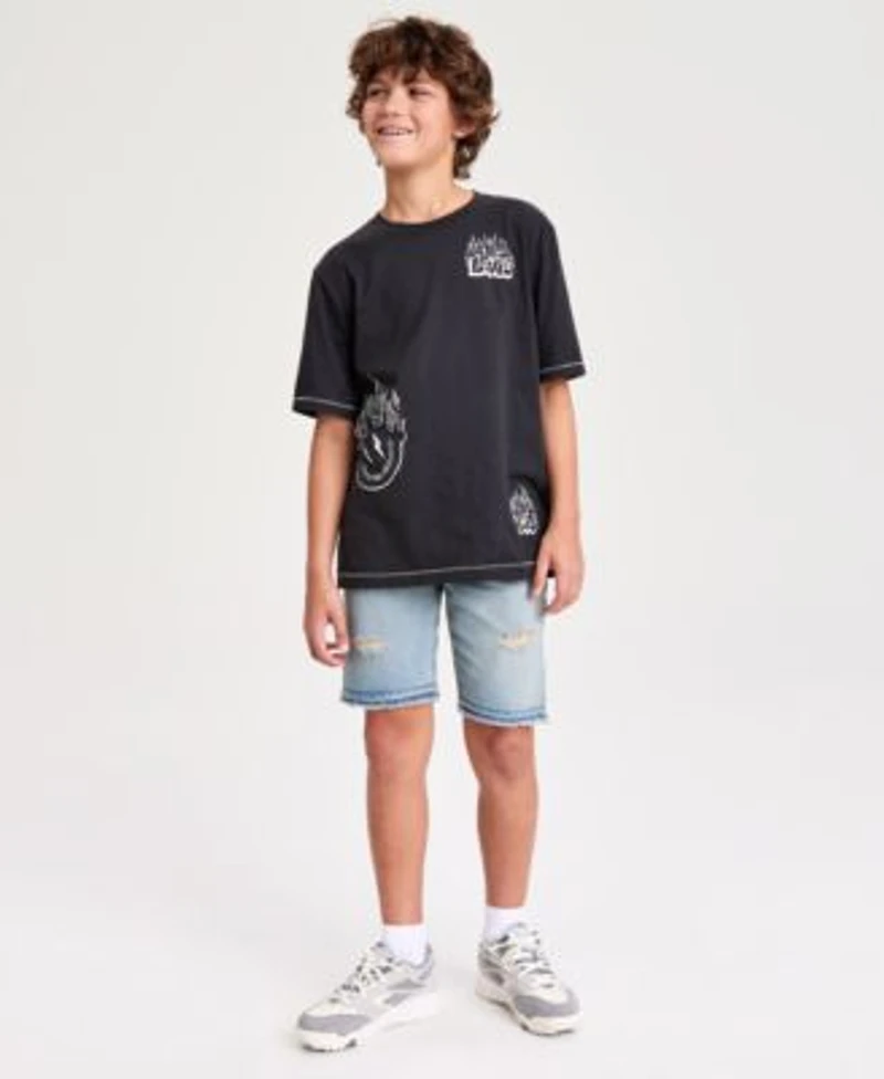 Levis Boys 8 20 On Fire Graphic Print T Shirt Unbasic 511 Slim Fit Denim Shorts