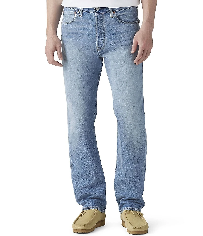 From Levi's® Big & Tall, these jeans feature: Mid-rise Stretch denim Zip-front closure Belt loops Inside adjustable waist 5-pocket jeans Original fit Full length Straight legs Tilted waistband pitches toward the front; sits below the waist Cotton/spandex Machine wash/tumble dry Imported.