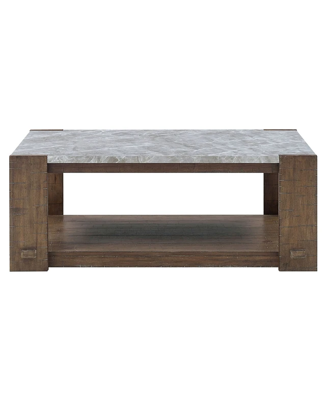 Biscayne 48" Wood with Travertine Insert Rectangle Cocktail Table