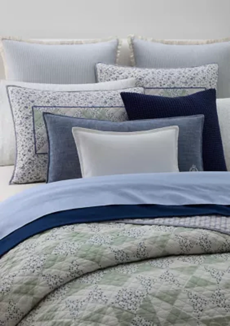 This Lauren Ralph Lauren Home heirloom-inspired cotton sham features an arrangement of charming florals in a geometric pattern with classic diamond stitchwork. A coordinating striped floral print graces the reverse for versatile styling. Each sham sold individually Insert sold separately Diamond-quilted construction Floral print at the front Striped floral print at the reverse Hidden zip closure at the back OEKO-TEX® MADE IN GREEN Standard sham: 36" W x 20" L King sham: 36" W x 20" L Shell: 100% cotton Fill: 100% polyester Machine washable Imported "BCI COTTON BCI #1000451-1" Imported