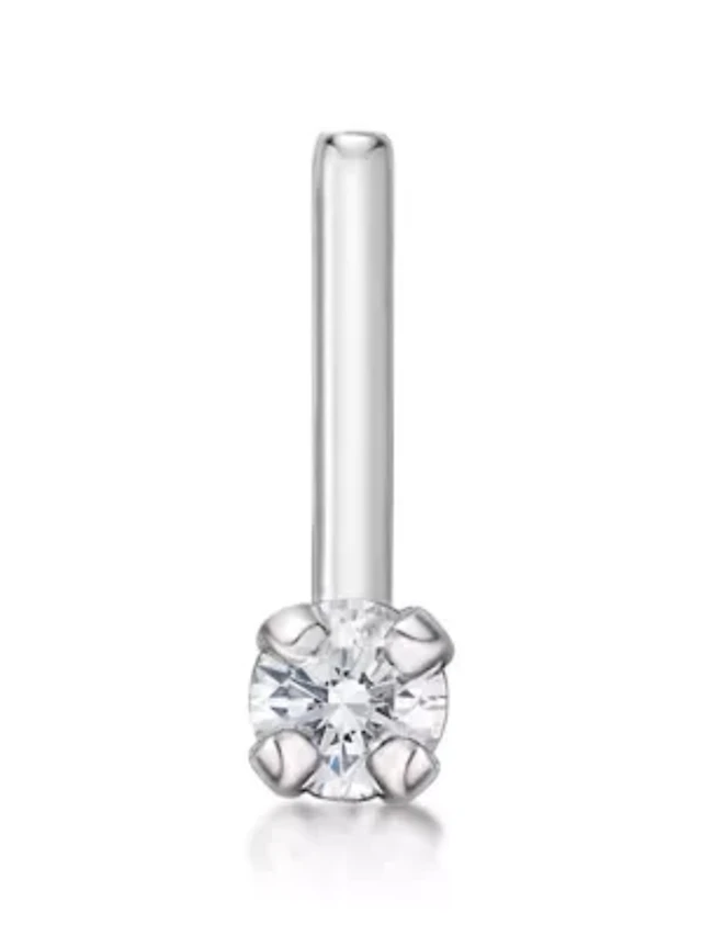 Nose Stud in 14K White Gold with Round Diamond Accent