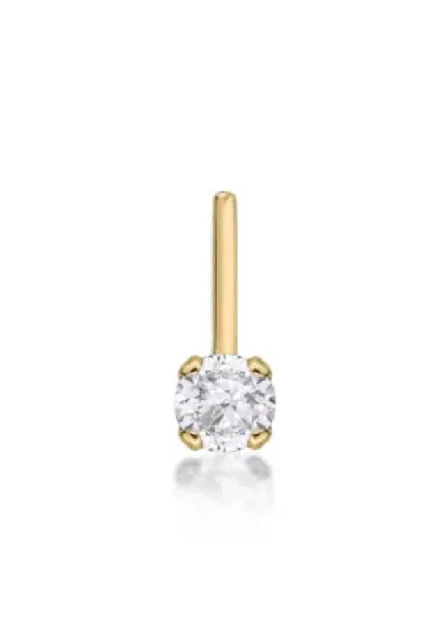 14K Gold CZ Round Bezel L-Shape Nose Stud - 18G 5/16"