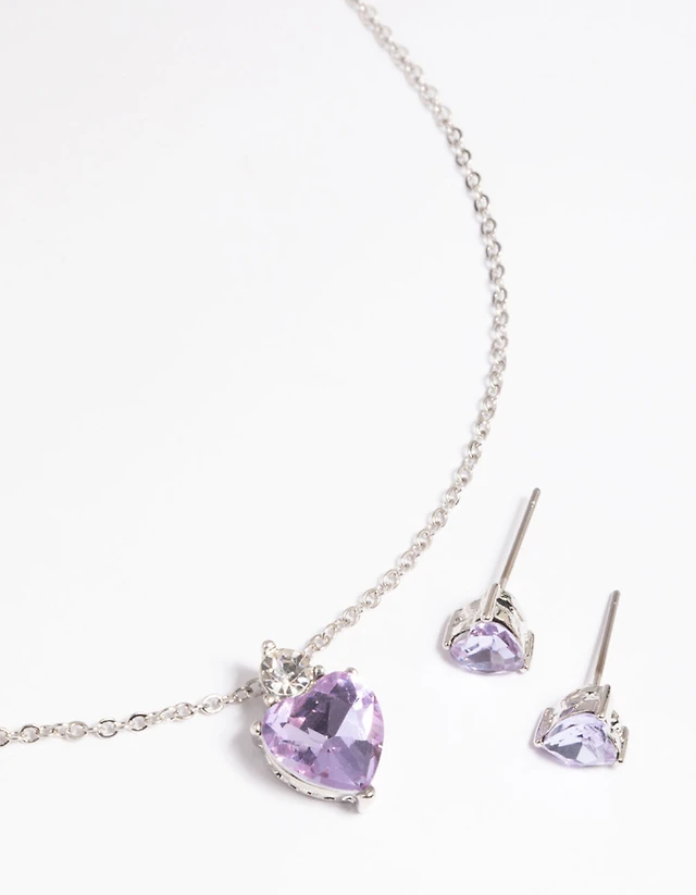 Lilac Heart Necklace & Earrings Set