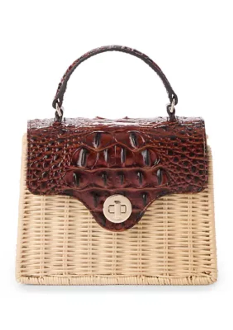 Brahmin's Liliana bag is a chic, wicker crossbody for spring. This trendy style is lined with a pop of print for a luxurious surprise. The interior is roomy enough to fit essentials, a cell phone, a compact, and keys. IDs or credit cards can be slid into the interior pocket for safe keeping. The flap closure and turn-lock add more security and elegance. Adjustable strap Imported Product Specifications 6.75'' W x 4.75'' H x 2.75'' D Material & Care Straw Clean with a soft cloth