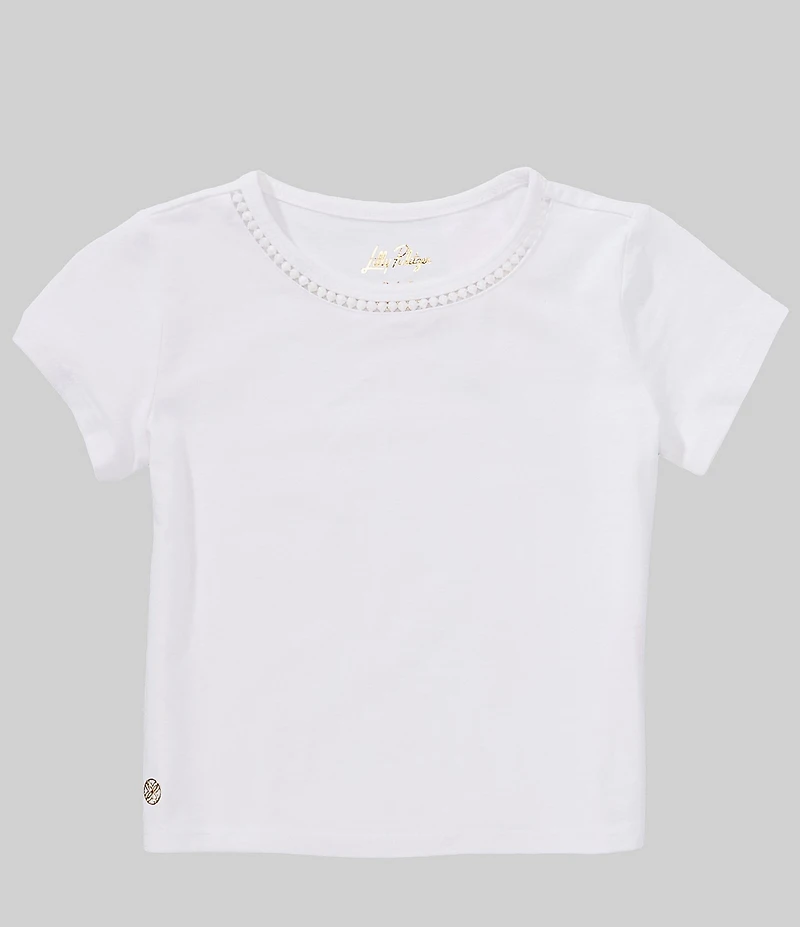 Lilly Pulitzer Girls Mini Clairmont Crew Neck Short Sleeve Eyelet Detail Top