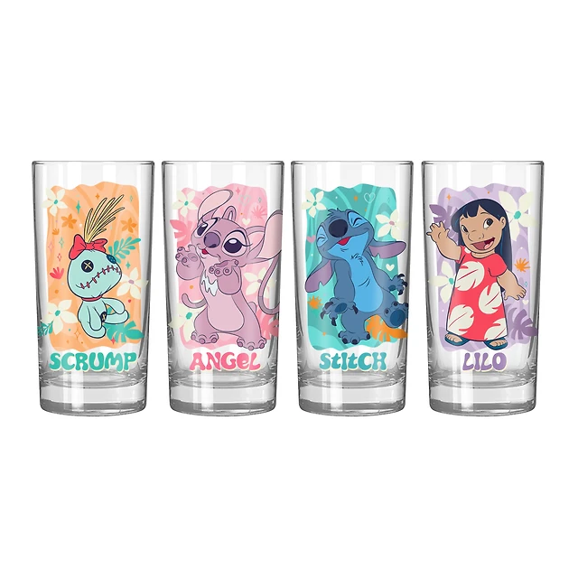 Lilo and Stitch Tropical Character Panels 4-Piece 10oz. Tumbler Glass Set