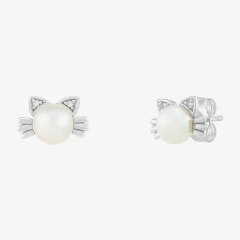 Limited Quantities! Cat White Cultured Freshwater Pearl Sterling Silver 7.2mm Stud Earrings