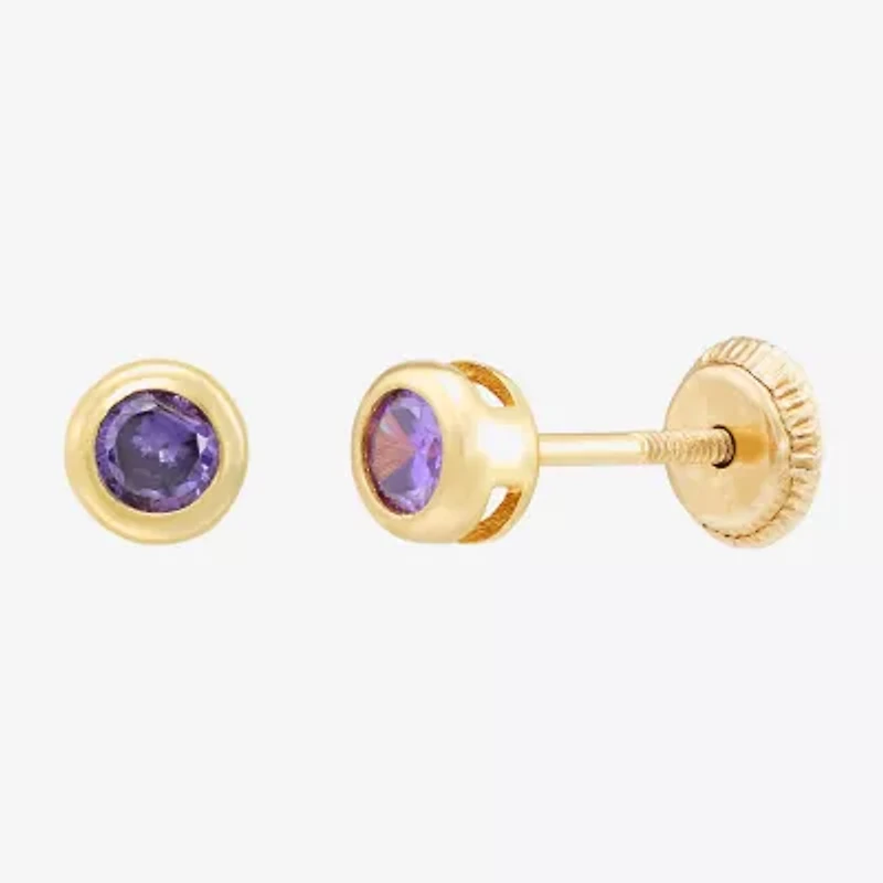Limited Quantities! Purple Cubic Zirconia 14K Gold 4.5mm Round Stud Earrings