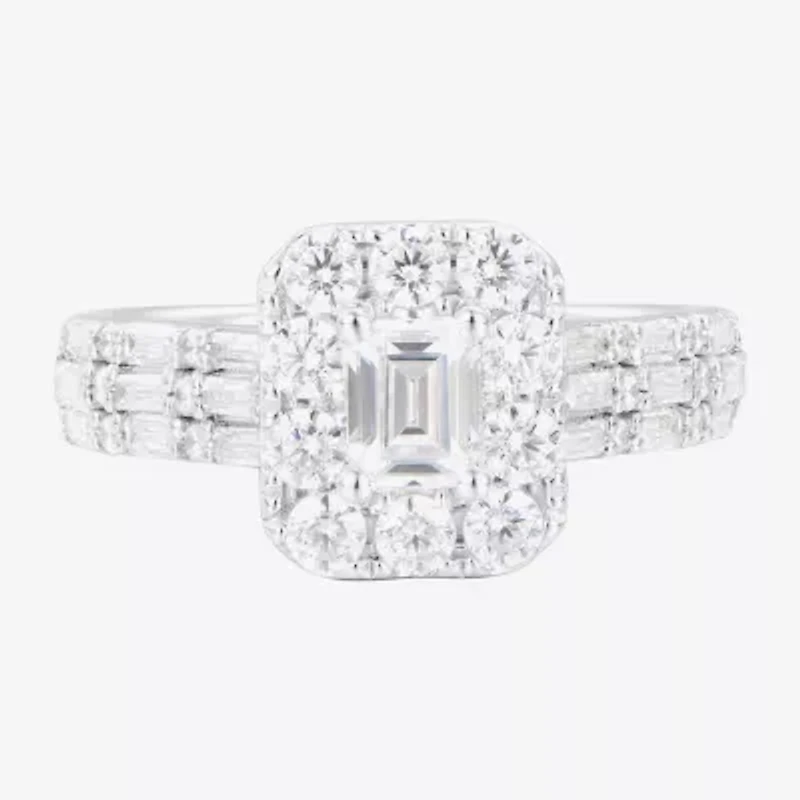 Limited Quantities! Womens 1 1/2 CT. T.W. Natural White Diamond 14K White Gold Side Stone Halo Engagement Ring