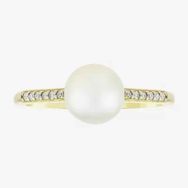 Limited Quantities! Womens Diamond Accent 7MM White Cultured Freshwater Pearl 10K Gold Side Stone Cocktail Ring