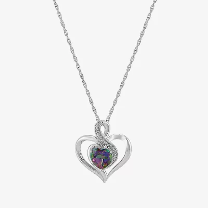 Limited Quantities! Womens Diamond Accent Genuine Mystic Fire Topaz Sterling Silver Heart 18 Inch Pendant Necklace