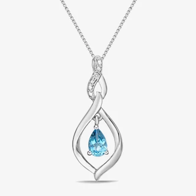 Womens Genuine Blue Topaz Sterling Silver Pear 18 Inch Pendant Necklace