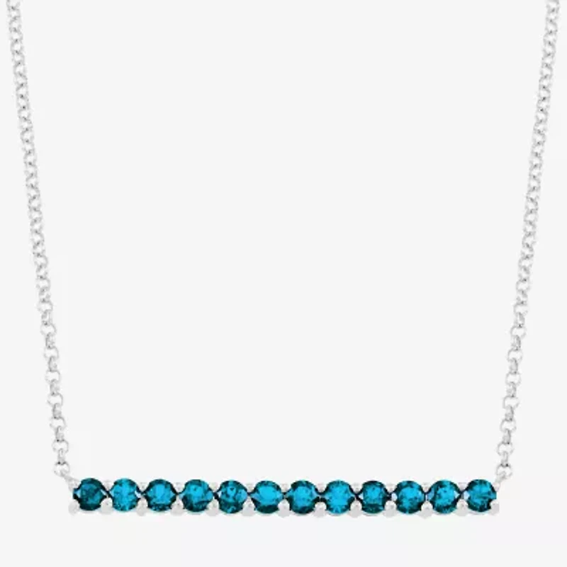 Limited Quantities! Womens Genuine Blue Topaz Sterling Silver Bar 18 Inch Pendant Necklace