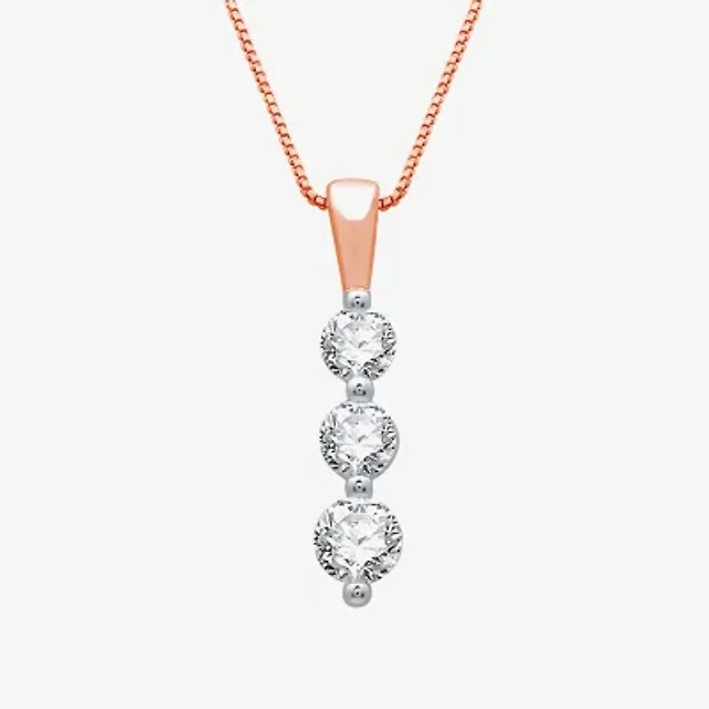 Linear 3-Stone (H-I / I1) Womens 1/2 CT. T.W. Lab Grown White Diamond 10K Rose Gold 18 Inch Pendant Necklace