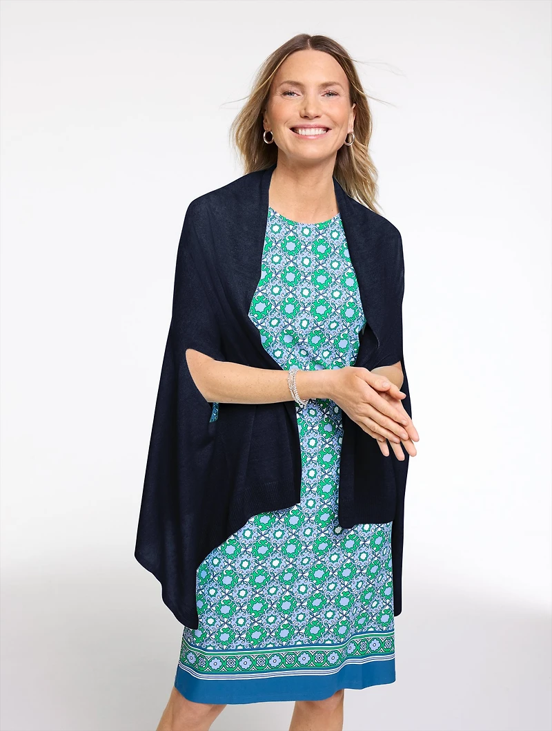 Add luxe layers to your ensembles with this effortless travel ruana. Crafted from a soft linen blend. Perfect from office to boarding gate. Drape it over your favorite outfits this season.