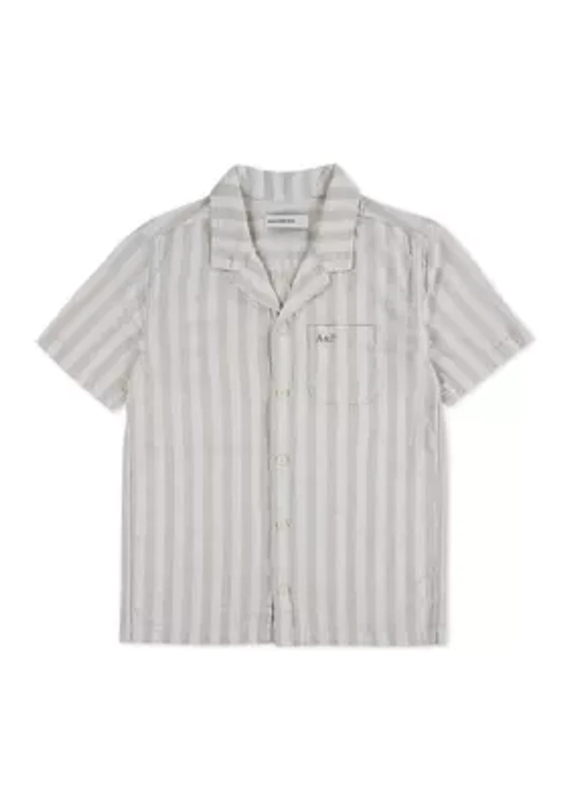 Crafted from a lightweight linen-blend fabric, this absercrombie kids shirt keeps them cool and comfortable all day long. Designed with a relaxed collar and classic stripe pattern, it delivers a laid-back look that’s perfect for vacations, playdates or special occasions. Button closure Spread collar Short sleeves Imported Material & Care Linen, rayon Machine washable