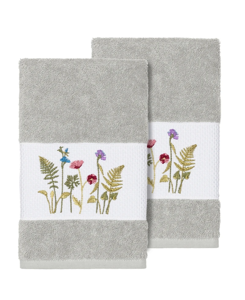 The Serenity Embellished Towel Collection features an intricate wildflower embroidery motif on a textured woven border. These soft and luxurious towe offer lasting absorbency and superior durability.Set includes 2 Hand Towels.