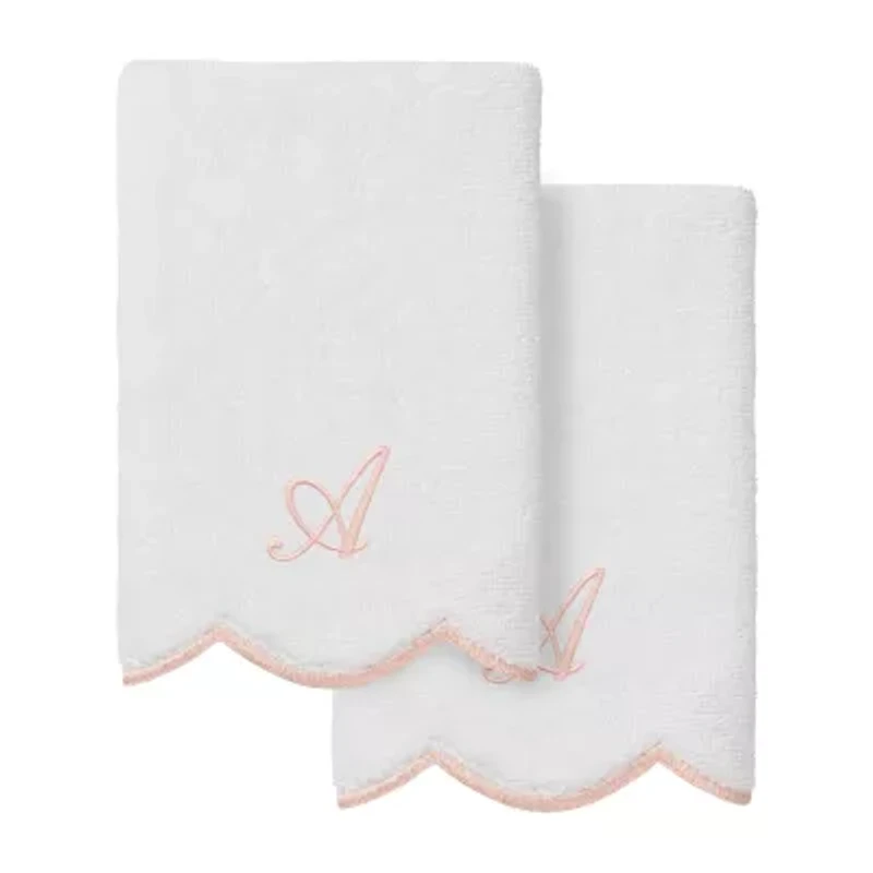 Linum Home Textiles Adornia Scallop Pink Personalized 2-pc. Fingertip Towel