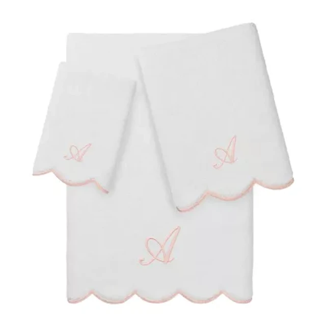 Linum Home Textiles Adornia Scallop Pink Personalized 3-pc. Quick Dry Bath Towel Set