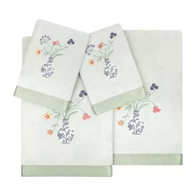 Your decorations are not complete without charming embroidered towels for the comfort of your family and guests. The STELLA towels feature lovely flower stems in an applique blue & white vase and are trimmed with a lustrous bengaline border. Cloud soft and super absorbent, these luxurious, durable towels keep their plush appearance after washing. This collection is available in 8 elegant colors: White, Beige, Blush, Aqua, Silver, Cocoa, Charcoal and Marine. The STELLA Towel Collection brings cottage spirit and richness to your home decor and makes a great gift. Note: Due to variations in computer screen resolutions, slight color differences may exist between images provided and actual product.