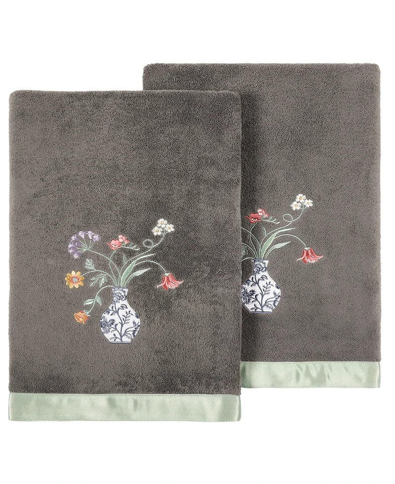 The Stella towels feature lovely flower stems in an applique blue and white vase and are trimmed with a lustrous bengaline border. Cloud soft and absorbent, these luxurious, durable towels keep their plush appearance after washing.