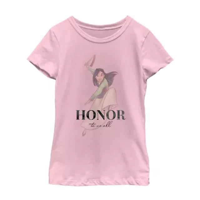 Disney Little & Big Kid Girls Crew Neck Short Sleeve Slim Fit Princess Graphic T-Shirt