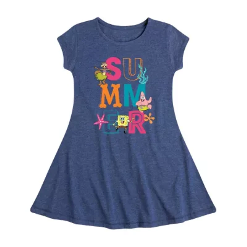 Little & Big Kid Girls Short Sleeve Spongebob A-Line Dress
