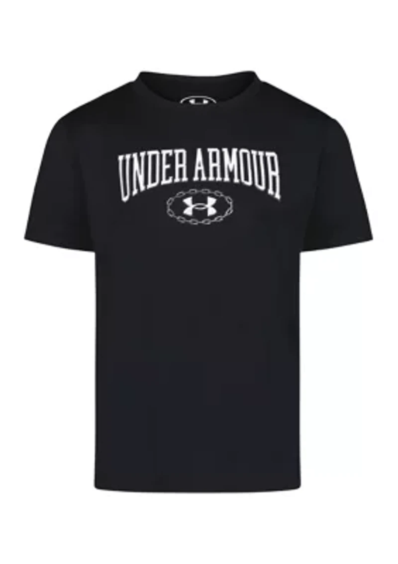 This graphic t-shirt is made with UA Tech™ fabric, which is quick-drying, ultrasoft and designed to provide a more natural feel. The smooth and lightweight construction delivers superior performance and all-day comfort. Designed with short sleeves, bold screenprint graphics, a classic crew neck with banded trim, and a tagless interior, it’s perfect for active days. Pullover Crew neck Short sleeves Imported Material & Care 100% polyester Machine washable