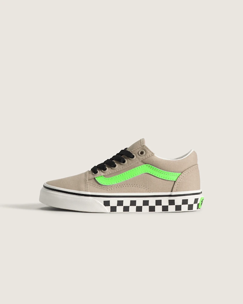The Old Skool was our first footwear design to showcase the famous Vans Sidestripe—although back then, it was just a simple doodle drawn by founder Paul Van Doren. Since its debut in 1977, this low-top silhouette has established itself as an icon in the skate, music, and fashion scenes. Consistently the go-to shoe for creatives who do things their own way, the Kids Old Skool features a dainty floral print at the laces and Sidestripes, adding a sun-kissed touch to this heritage shoe.