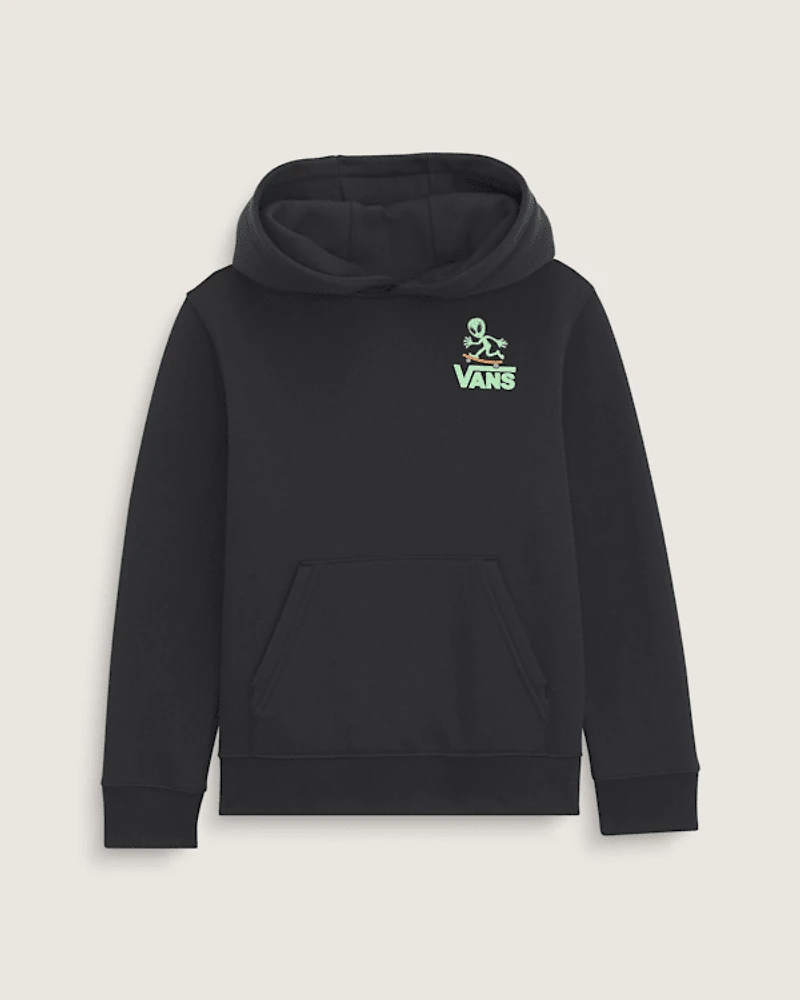 The Little Kids Zero Gravity Pullover Hoodie brings an out-of-this-world style. With aliens, astronauts, and cosmic critters that glow in the dark, this hoodie turns heads day or night. A soft fleece body keeps it comfy while the pullover design makes layering easy.
