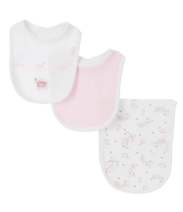 Little Me Baby Girls Rose Bib and Burp Cloth, 3 Piece Set